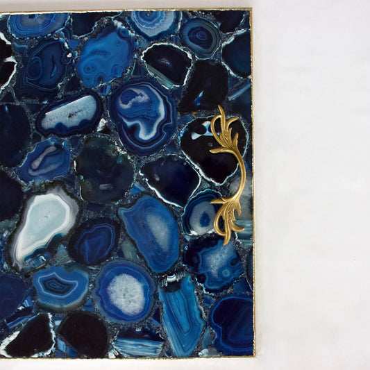 Blue Agate Square Serving Tray With Brass Handles | Square